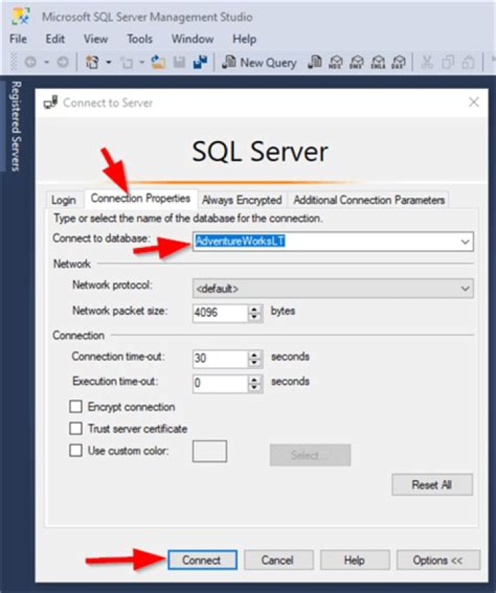- Authentication is SQL Server Authentication.