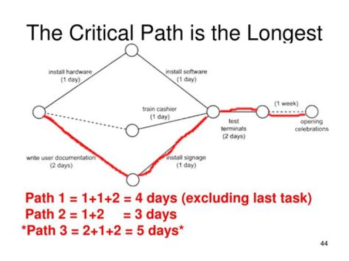 The critical path is the longest sequence of tasks in your network diagram that must be completed if the project is to be delivered on time. It can also be defined as the shortest amount of time needed to complete the project.What is the shortest path in a network diagram?