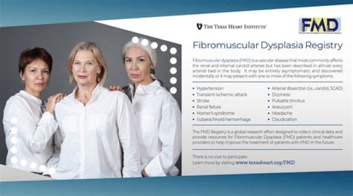 Fibromuscular dysplasia (FMD) affects the artery walls, making them either too weak or too stiff. This can lead to serious complications, including arterial narrowing (stenosis), weakening/bulging (aneurysm) or tearing (dissection).
